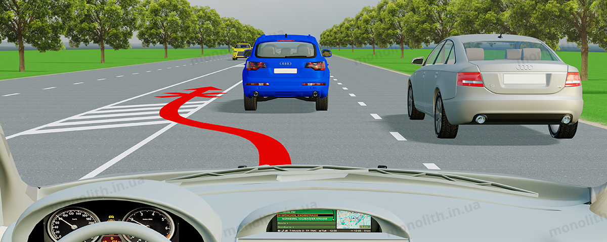 11.11. При інтенсивному русі змінювати смугу дозволяється лише для об'їзду перешкоди, повороту, розвороту або зупинки.